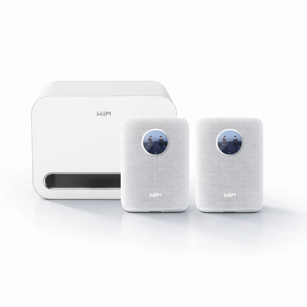 2-pakning WiiM Sound smart høyttalere med skjerm, hvit