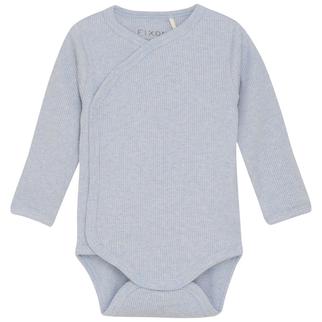 Fixoni Wrap Body LS Mélange Rib Zen Blue Zen Blue Wrap Baby Body 44 cm Blå 44 cm Unisex
