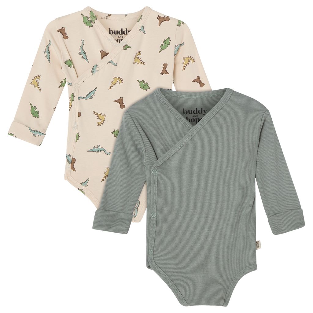 Buddy & Hope GOTS Max Wrap Body 2-pakning Sage Green / Dinosaur 62/68 cm Grønn Dyr 62/68 cm Unisex