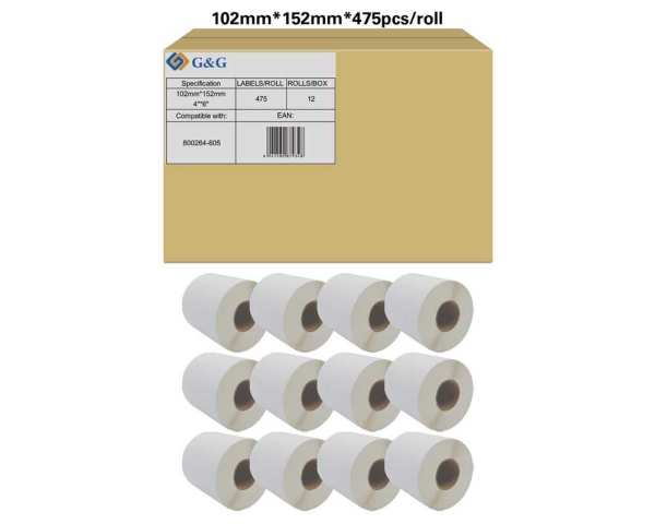 G&G 19750, Hvit, Selvklebende Skriveretikett, Rull, Rektangel, Sebra, Zebra Gc420d Zebra Gc420t Zebra Gk420d Zebra Gk420t Zebra Gx420d Zebra Gx420t Zebra Gx430t Zebra...