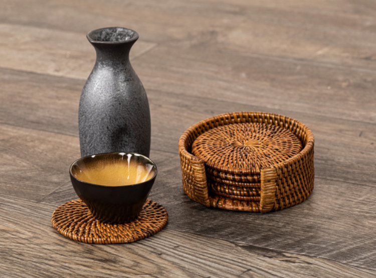 Ziczac - Rattan dekkebrikke D36 cm rund mørk brun