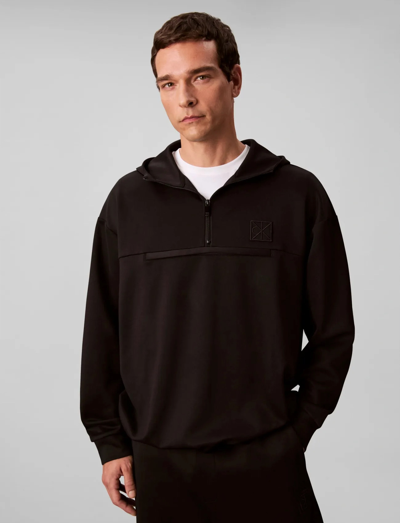 Calvin Klein Heavy Tricot Qtr Zip Anorak Hood - Black - XS