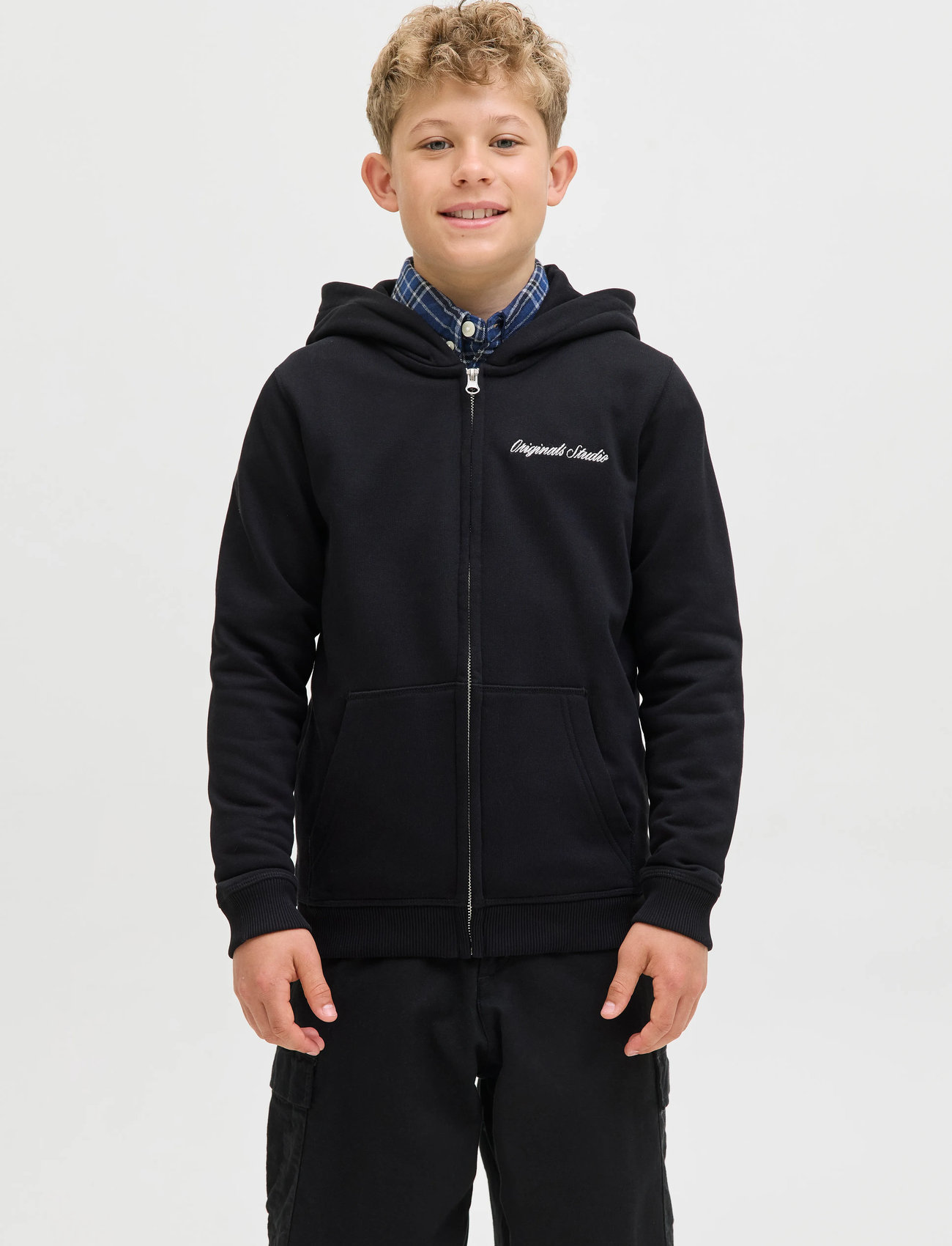 Jack & Jones Jornorrebro Emb Sweat Zip Hood Jnr - Black - 176