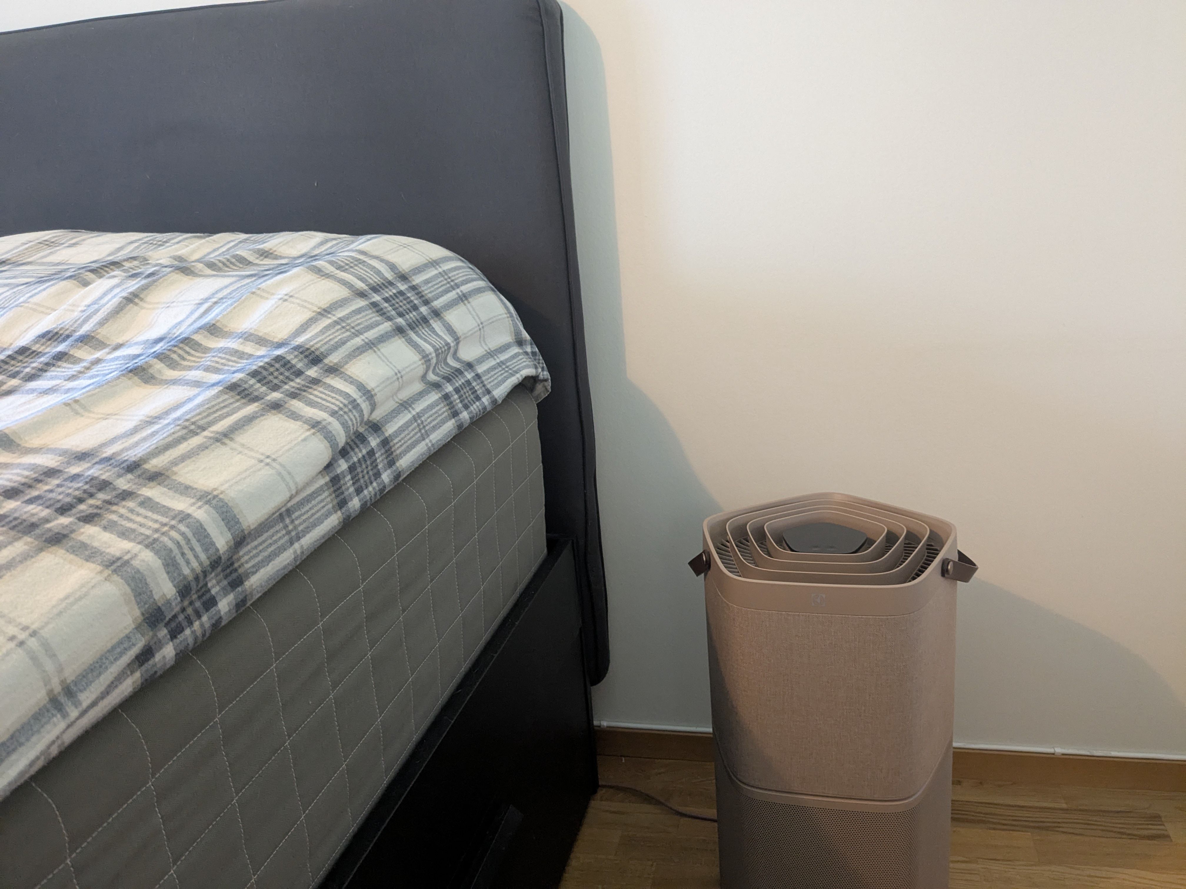 Et svært godt førsteinntrykk! Når jeg tar luftrenseren ut av esken, er Electrolux sitt designpreg umiddelbart tydelig. Med skinnhåndtak og et elegant stoff som omslutter hele enheten, ser den rett og slett eksklusiv ut. Den kommer i flere farger som passer inn i de fleste rom og interiørstiler. Bra jobba, Electrolux!