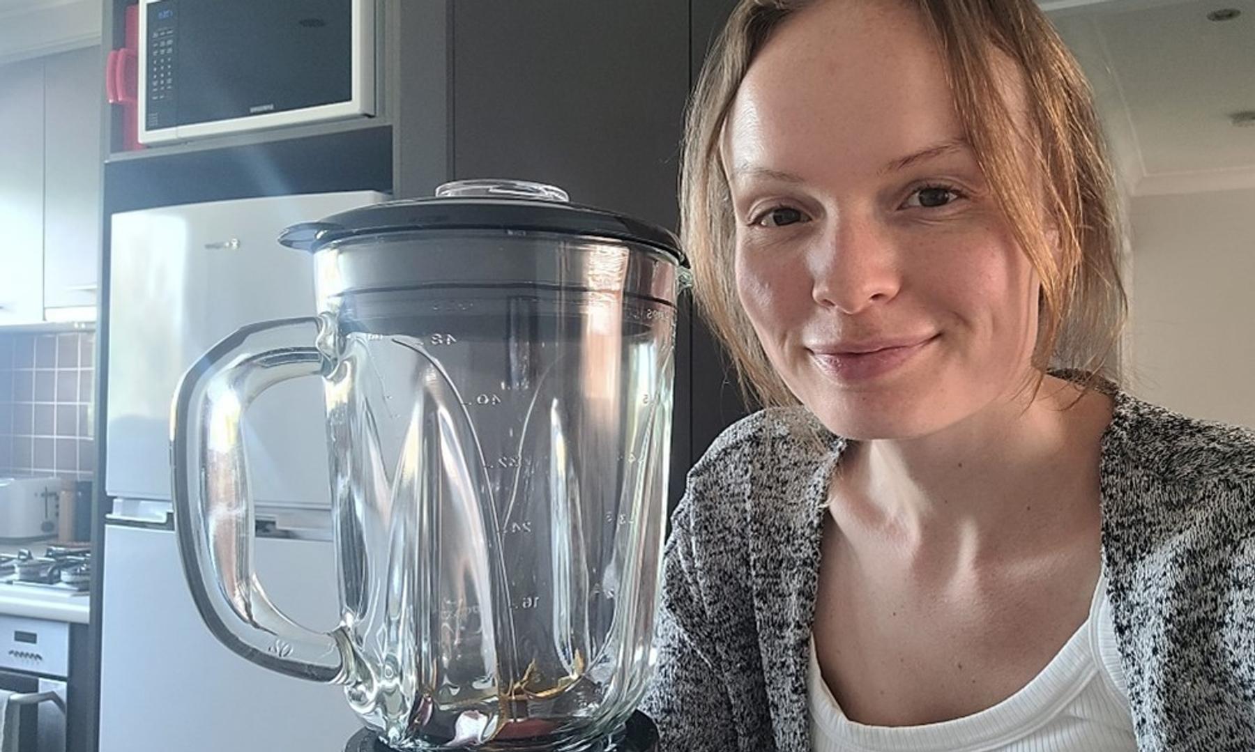 I tillegg til en 2-liters beholder i BPA-fri plast følger det med en mindre blenderkopp på 700 ml som smoothien eller proteinshaken kan blendes direkte i og tas med på farten. Det hører også med en "matstapper", noe som er veldig greit å ha.